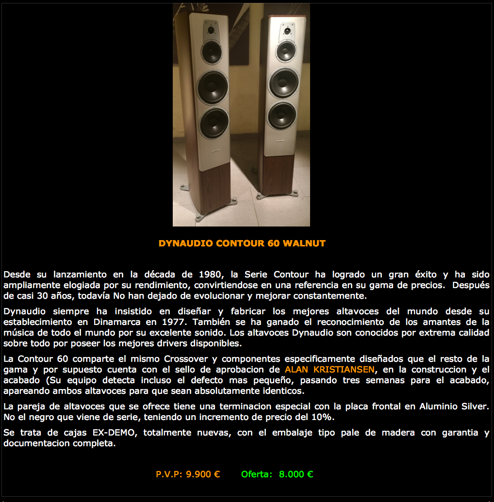 DYNAUDIO CONTOUR 60 WALNUT: Desde su lanzamiento en la década de 1980, la Serie Contour ha logrado un gran éxito y ha sido ampliamente elogiada por su rendimiento, convirtiendose en una referencia en su gama de precios. Después de casi 30 años, todavía No han dejado de evolucionar y mejorar constantemente.