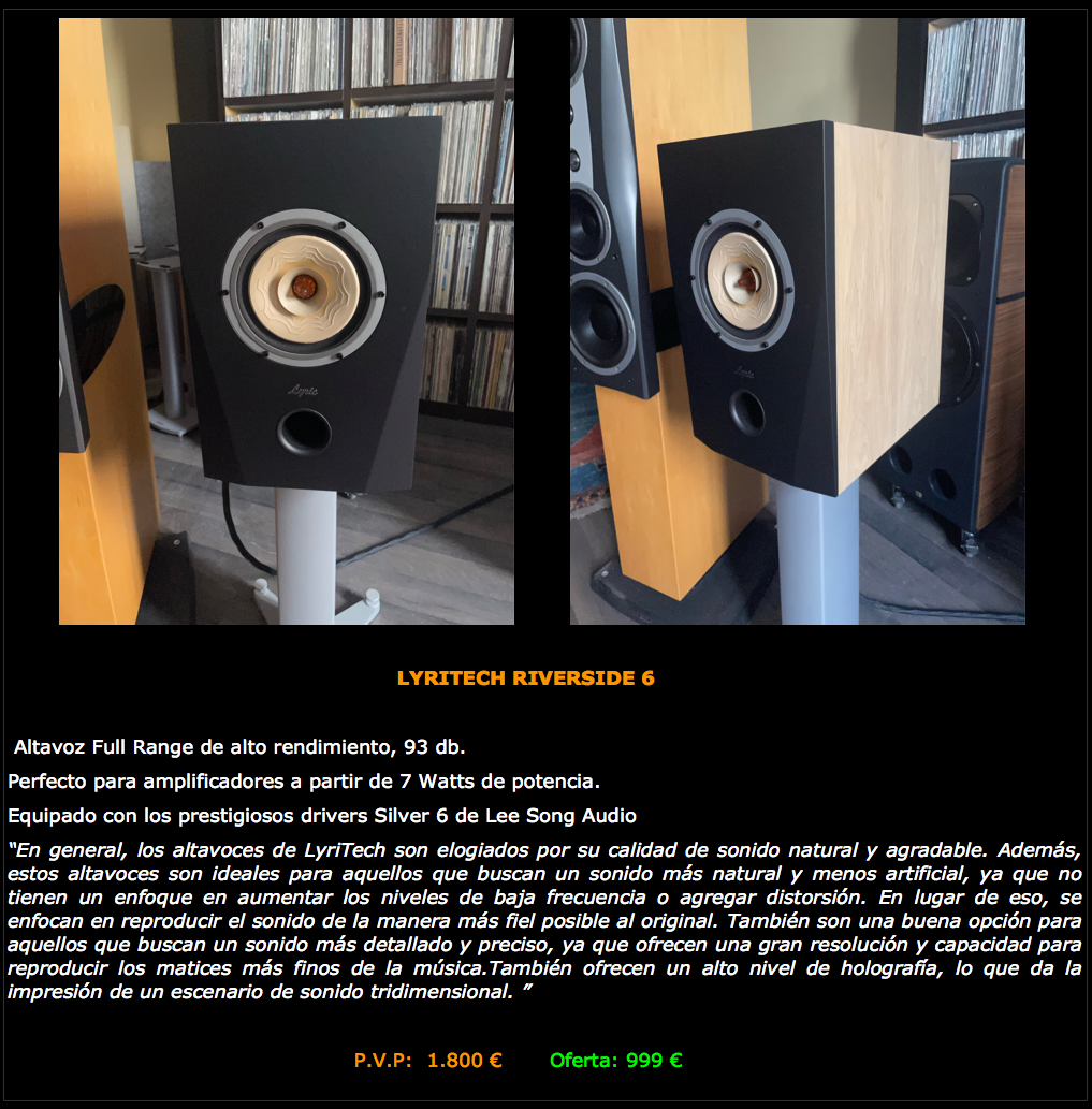 “En general, los altavoces de LyriTech son elogiados por su calidad de sonido natural y agradable. Además, estos altavoces son ideales para aquellos que buscan un sonido más natural y menos artificial, ya que no tienen un enfoque en aumentar los niveles de baja frecuencia o agregar distorsión. En lugar de eso, se enfocan en reproducir el sonido de la manera más fiel posible al original. También son una buena opción para aquellos que buscan un sonido más detallado y preciso, ya que ofrecen una gran resolución y capacidad para reproducir los matices más finos de la música.También ofrecen un alto nivel de holografía, lo que da la impresión de un escenario de sonido tridimensional. ”